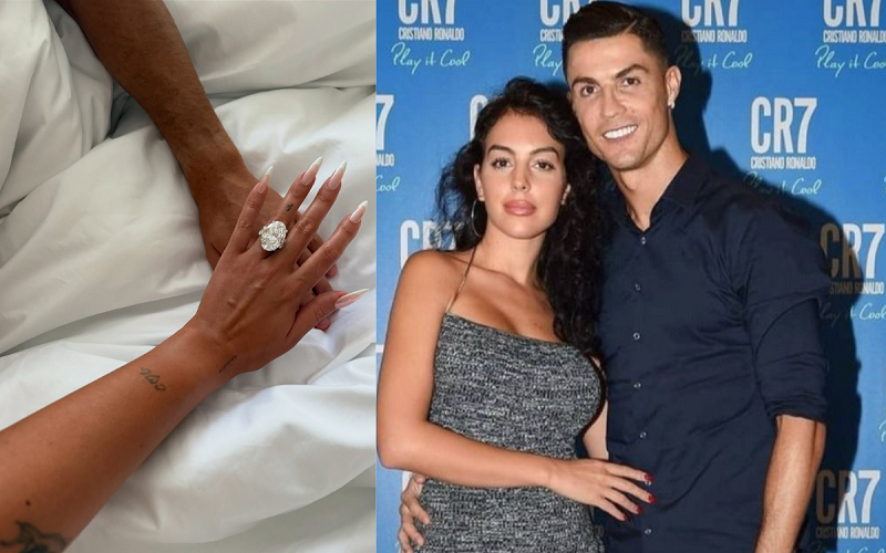 ছবিতে দেখা গেছে, জর্জিনার বাম হাতের অনামিকা আঙ্গুলে শোভা পাচ্ছে চকচকে ডায়মন্ডের আংটি, যা এনগেজমেন্টে জর্জিনাকে উপহার হিসেবে দিয়েছেন রোনালদো।